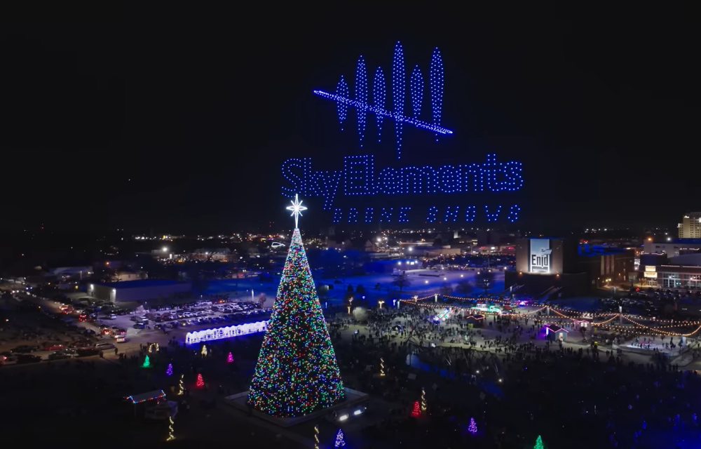 Sky Elements performed a Christmas drone show using 1,000 drones above the tallest Christmas tree in America.