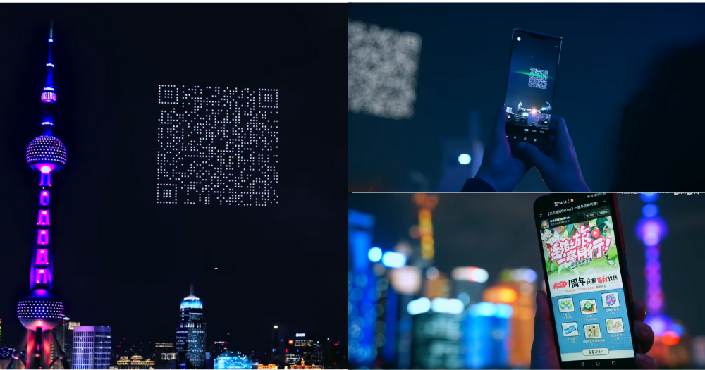 Recently, Bilibili launched 1,500 drones into the sky to form a QR code at The Bund, Shanghai.