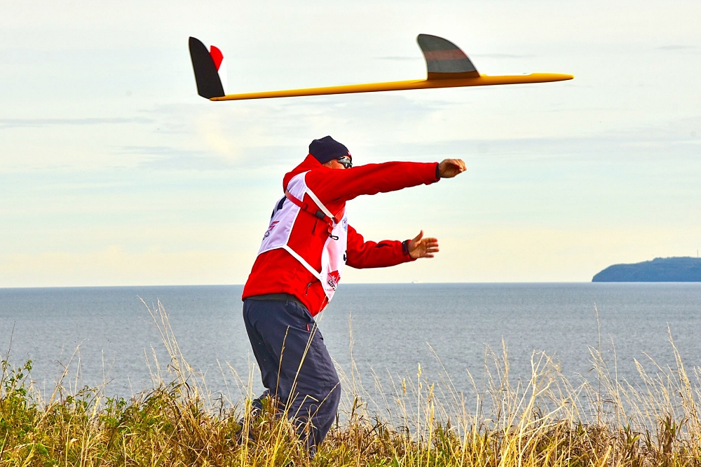 Slope soaring gliders belong to the F3F radio control class, and as the name suggests, competitions are flown in front of a slope. This class focuses solely on speed, challenging the pilots to remotely pilot their model aircraft through a 1000m course, divided into 10 legs, in the shortest time possible.