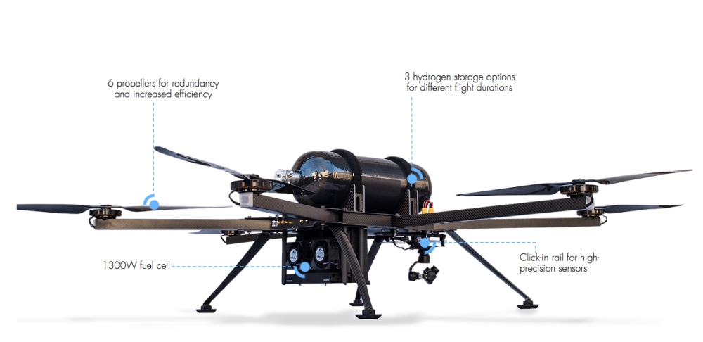 Now and after many years of work, HES merged its core technologies with a specially adapted multi-rotor design so that flight durations can extend to 3.5 hours, instead of the typical 20-30 minutes when using lithium batteries.
