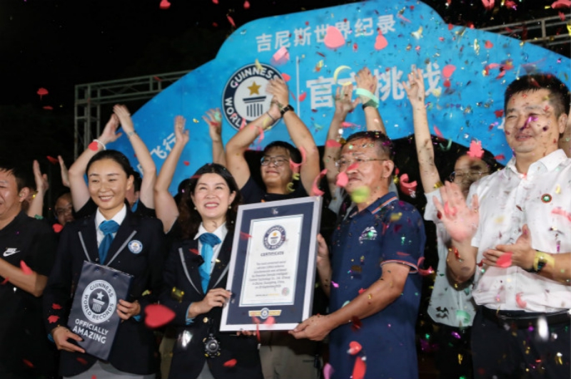 The team from the Shenzhen Damoda Intelligent Control Technology Co., Ltd. (China) in Zhuhai, Guangdong, China, recently set the Guinness World Record for the most Unmanned Aerial Vehicles (UAVs) airborne simultaneously.