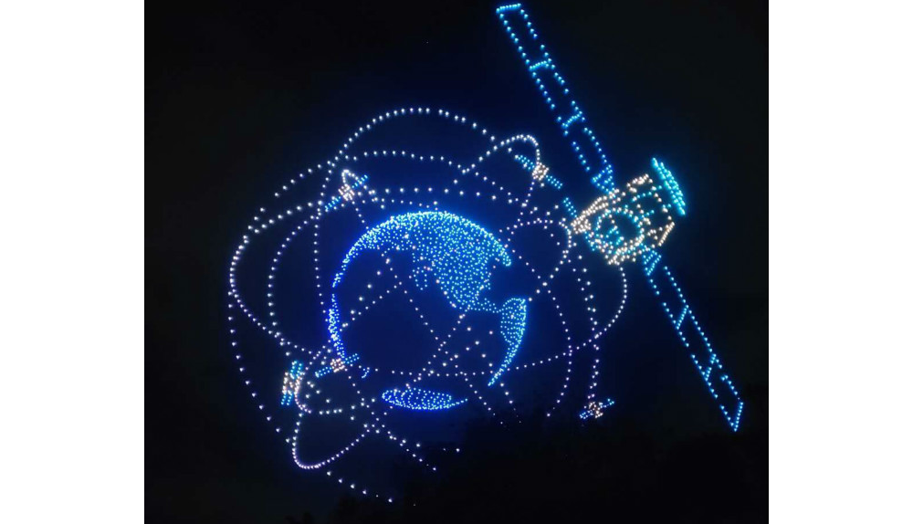 In the early morning, over three thousand drones took off in a grid-like formation. Then, the formation of drones in the air began to change, from a grid into the shape of the earth. Around the globe, the Beidou navigation system then appeared.