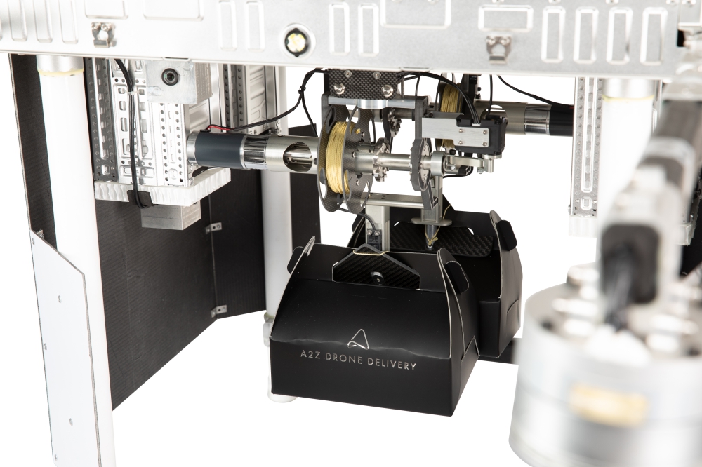 The RDSX is a flexible drone delivery platform capable of carrying dual payloads each weighing up to two kilograms on a round trip of up to 18 kilometers, or the RDSX can be configured with a single tether to expand its range out to 30 kilometers. The controlled-freefall delivery method employed by the RDSX allows UAV service providers to reduce time-on-station to a minimum by delivering the package to the ground in seconds and eliminating the need for the drone to touch down. By maintaining its altitude throughout the delivery, the RDSX keeps spinning rotors away from people and property, mitigating consumer concerns and enabling it to deposit payloads into areas congested by trees, wires or other dangerous obstructions. The integrated A2Z Drone Delivery app combines manual control system operations with an onboard computer and sensor array to manage the package’s controlled-freefall and gentle stop before the ground. With the package delivered, the RDSX’s Kevlar tether and auto-release mechanism releases the payload before being reeled back up for reuse.