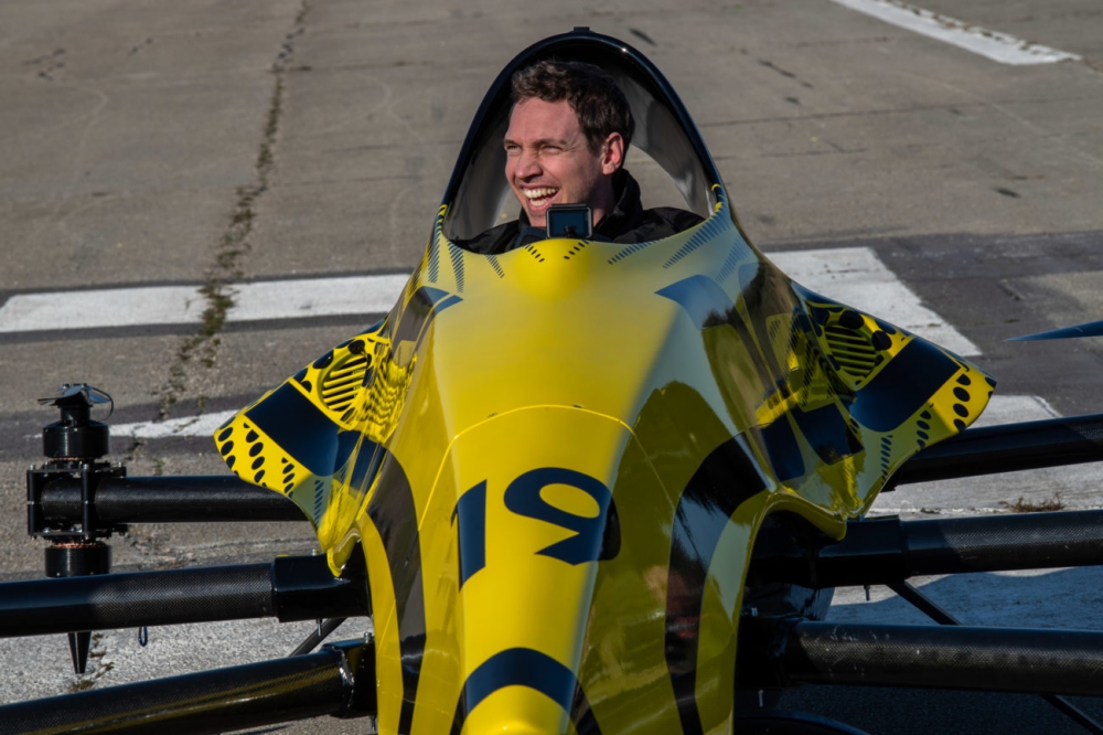 The “Big Drone” is Herbert’s brainchild, and he personally assisted in the aircraft’s first outdoor test, sitting in the single-seat machine as it was piloted via RC controller by former Drone Champions League contender and multi-discipline champion Mirko Cesena in Vrsar, Croatia.