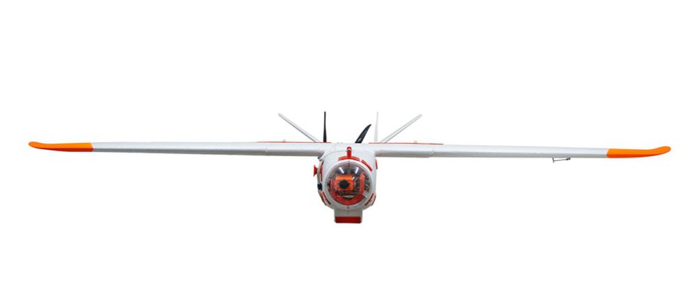 The drone itself has a 2-meter (6.6-ft) wingspan, weighs 3.6 kg (7.9 lb), has a maximum speed of over 85 km/h (53 mph) and is made from carbon fiber-reinforced EPO (expanded polyolefin) foam.