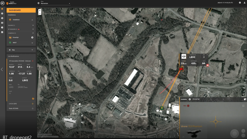 In addition to compatibility with DroneShield’s DroneShield Complete native GUI, DroneOptID can be used in third party Command and Control (C2) systems.