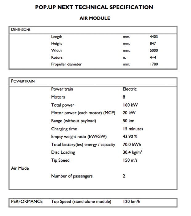 Pop.Up combines the flexibility of a small two seater ground vehicle with the freedom and speed of a vertical take-off and landing (VTOL) air vehicle, thus bridging the automotive and aerospace domains. The core of the product is therefore the Intermodality and making it modular.