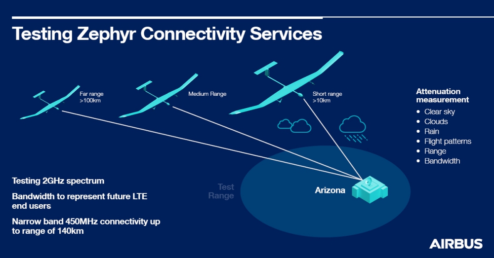 The test data will be used to inform future LTE direct-to-device services that are expected to be provided via the Airbus Zephyr HAPS solution.