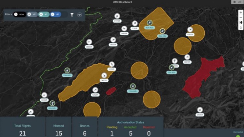 Photo: This is a common operational picture including the total number of aircraft within a given airspace using AirMap’s autonomous aircraft digital airspace management system - AirMap