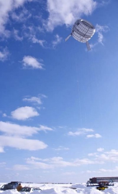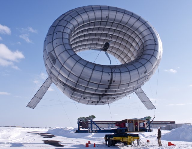 The lifting technology is adapted from aerostats, industrial cousins of passenger blimps that for decades have lifted heavy communications and radar equipment into the air for long periods of time. Aerostats are rated to survive hurricane-level winds and have safety features that ensure a slow descent to the ground.