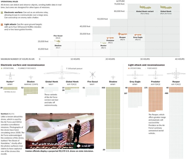 In the next decade, US defence spending on known medium- and large-size unmanned aircraft will be nearly $40 billion, increasing inventory by 35 percent. Ranging in size from a private aircraft to a commercial jet, nearly 800 of these bigger unmanned are operating around the world, observing, collecting data and in some cases attacking the enemy. The military also has thousands of mini-UAS used for battlefield surveillance. Since 2001, the US government is estimated to have killed more than 2,000 militants and civilians in UAS attacks.