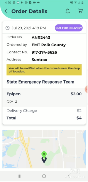 For the SASHTO event, ANRA’s delivery platform demonstrated how a First Responder (customer) can order an EpiPen from the State Emergency Response Team (vendor) for drone delivery over inaccessible roads that were flooded by a hurricane. This scenario was flown several times during the event for attendees, with the delivery/order app flow and airspace management details projected onto a large screen while the drone flew the live mission, allowing the attendees to view the entire process and workflow.