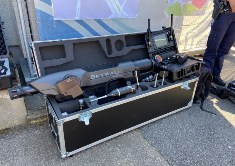 The second system seen with the Belgian security forces was the Skywall Patrol, made by Britain's OpenWorks Engineering, which fires small munitions using compressed air.