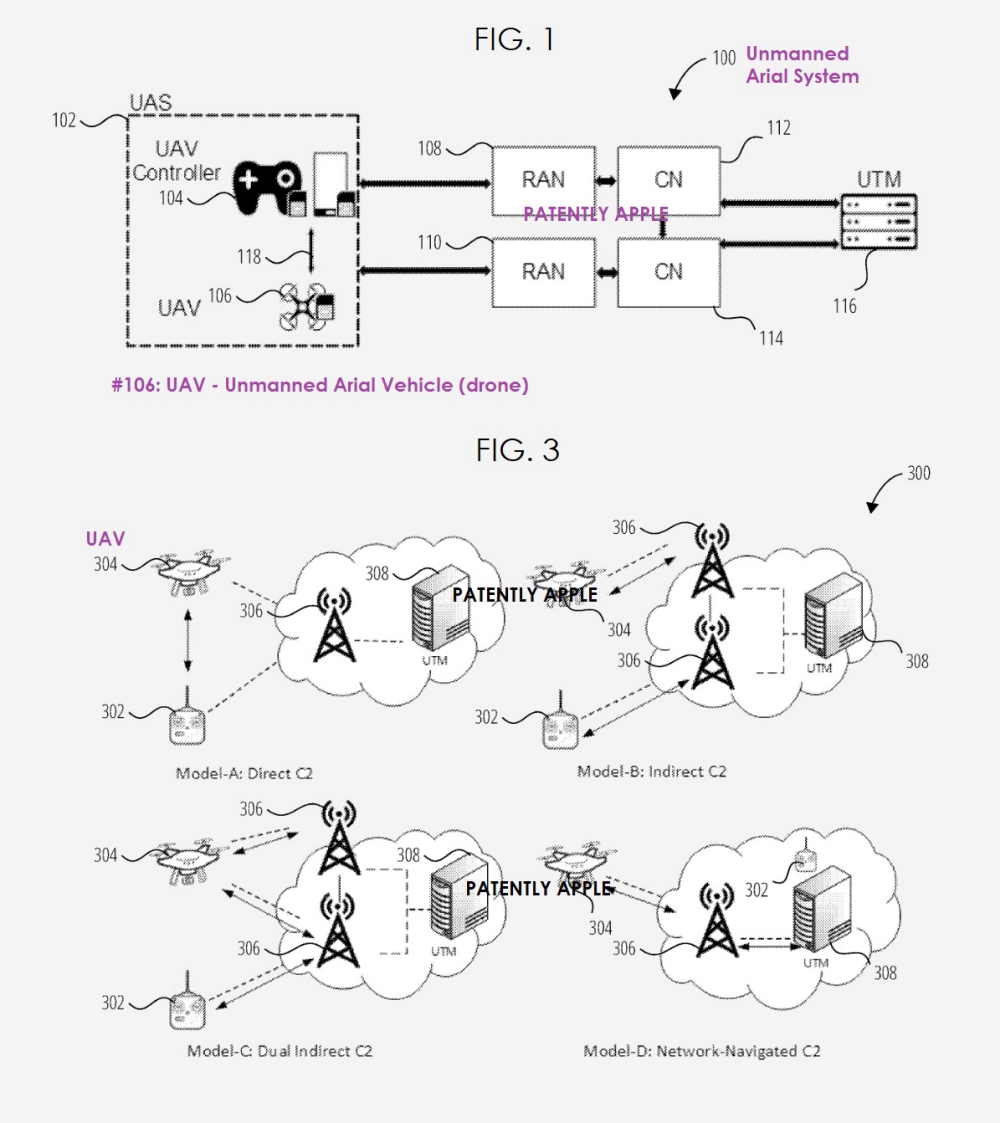 On October 21st. the US Patent & Trademark Office published a patent application from Apple titled "Systems and Methods for using Unmanned Arial Systems in Cellular Networks." It's a technical patent that covers systems and methods provide for provisioning services for an unmanned aerial system (UAS) in a 3GPP network, enabling communication for command and control in 5G systems, and enabling UAS service for identification and operation in a 3GPP system.