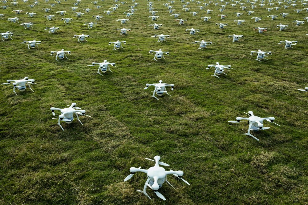 At the air show, Sam Zhang and Yuan Jiajie laid out more than 100 white drones on a grassy field, preparing for the evening’s entertainment. The two men work for Ehang, a Guangzhou-based company that makes consumer and commercial drones. Ehang is also testing another drone — a small, unmanned helicopter, essentially — that can fly a passenger for 25 minutes at an average speed of 37 miles an hour.