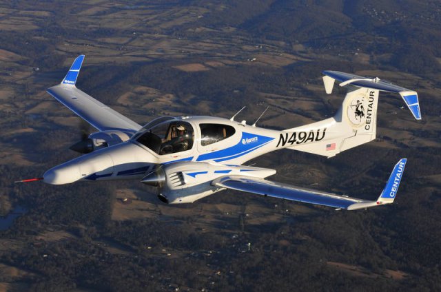 Aurora's industry team for Centaur includes Diamond Aircraft, Rockwell Collins, and Textron/AAI. Development of Centaur began in 2009. Test flights began in 2010, with the first fully automatic takeoffs and landings starting in 2011. The first production Centaur is scheduled for delivery to Switzerland in 2012.