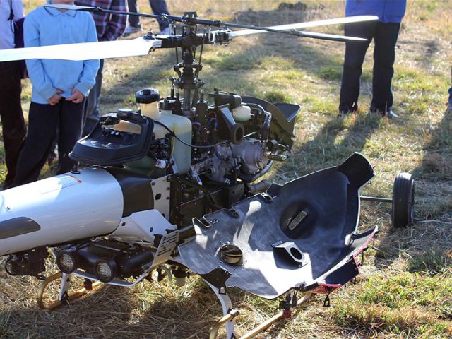 Mike Johnson says the machine is easy to fly, but purchasing companies and operators need training and accreditation through CASA. The unmanned chopper is around three and a half meters long, one meter high and runs on standard unleaded fuel.