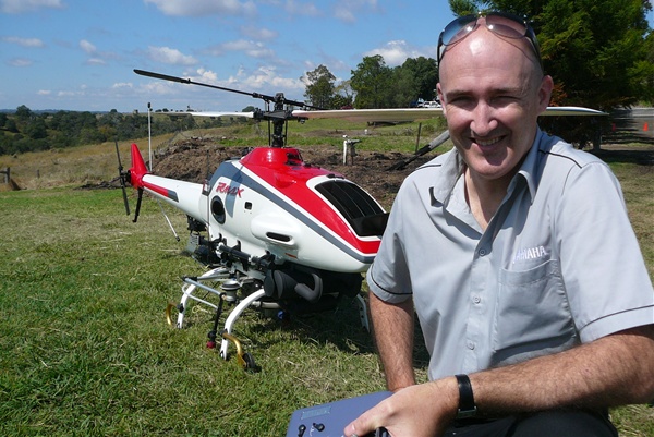 COMMENT: By any yardstick this precision engineered Rmax robotic helicopter looks the full-quid with the hand held controls able to direct the unit both forward and rearward across a paddock with pinpoint accuracy.