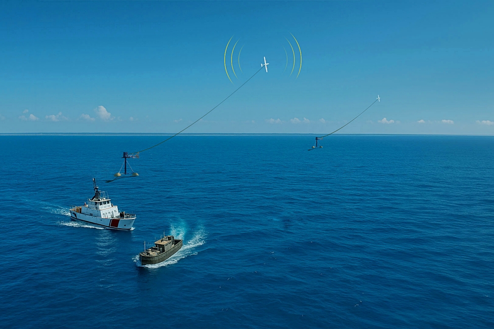 Windlift's new "GUARD" system is a mobile platform that includes a launcher and a tethered drone equipped with a navigation system that autonomously leverages wind to maintain altitude and stability.