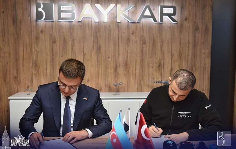 Haluk Bayraktar, the CEO of Baykar, and Deputy Defense Minister of Azerbaijan Agil Gurbanov signed the protocol during Teknofest, Türkiye's premier aerospace and technology festival held at Istanbul's Ataturk Airport.