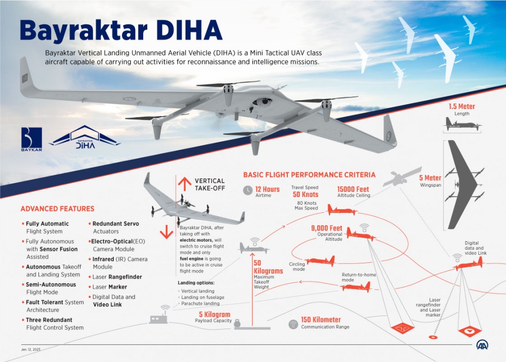 Turkey's Bayraktar vertical-landing unmanned aerial vehicles (DIHA) have successfully completed 8,000 feet operational altitude flight test, drone maker Baykar announced recently.