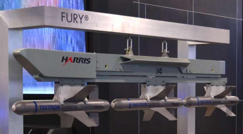 Bell’s mock-up at the Modern Day Marine Expo was carrying four dummy AGM-114 Hellfire missiles and a dozen inert Fury multi-mode precision-guided miniature munitions. Textron, Bell’s parent company, produces Fury, which is a small glide bomb that can use either laser or GPS/INS guidance options to attack stationary or moving targets in various weather and environmental conditions.
