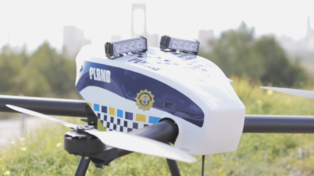 The setting of HYBRiX POLICE UAV (Unmanned Aerial Vehicle) includes an advanced EO/IR camera with 30x zoom on a three-axis gimbal, and a transponder system to coordinate with Air Traffic Control Authorities. Such configuration will enable the Police Aerial Unit to increase the safety and protection of the citizens of Benidorm in areas were it was not possible to provide a fast response before.
