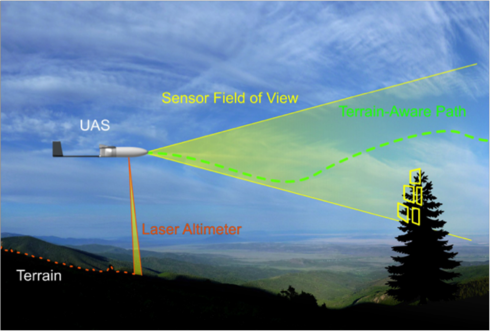 Fixed-wing aircraft can scan substantially more area in less time than their multi-rotor counterparts. Yet low altitude sensing by fixed-wing UAS is not without its challenges. Avoiding obstacles such as trees and towers, along with terrain variations that can exceed the climb capabilities of the aircraft, are some of the inhibitors to widespread use of fixed-wing aircraft for scientific and commercial data gathering operations (Figure 1).