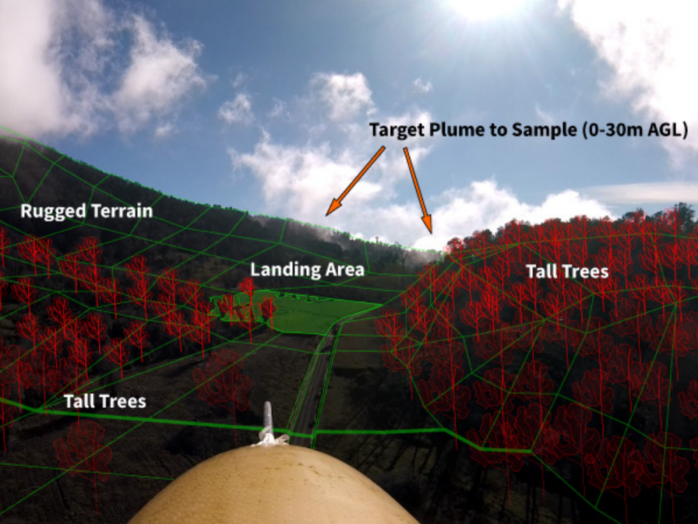 In the case of volcano monitoring, low-AGL UAS flights (following the terrain of the forest canopy) enables the vehicle to directly sample gas plumes and ash clouds that are low to the ground, where the richest chemical and physical characteristics exist immediately after eruptions (Figure 3).