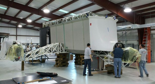 The 370-foot-long (123 m), 1.4 million-cubic-foot (37,000 m3) Mav6 M1400 Blue Devil 2 is in final assembly at airship maker TCOM's hangar in Elizabeth City, North Carolina. Despite rumours to the contrary, work is still very much underway, with sub-contractor Almaga Composites providing carbon fibre components for the project.