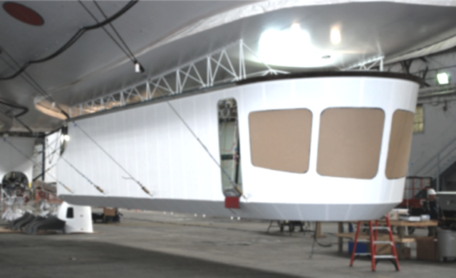 The above photo shows the M1400 airship control car wrapped in vinyl, whilst engineers continue to make significant progress installing avionics integration, electrical wiring, etc....