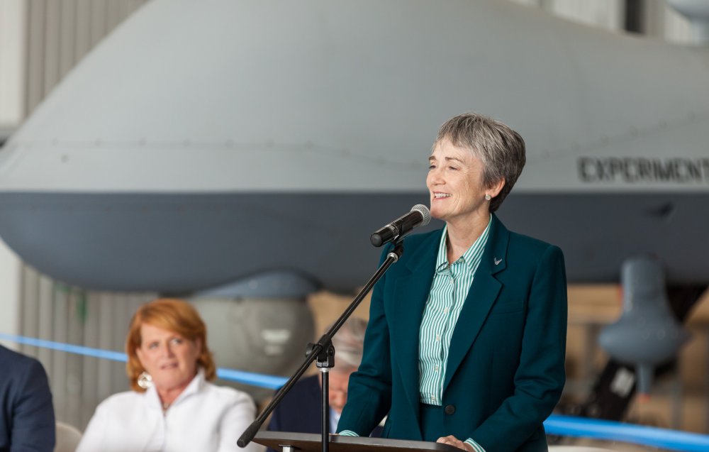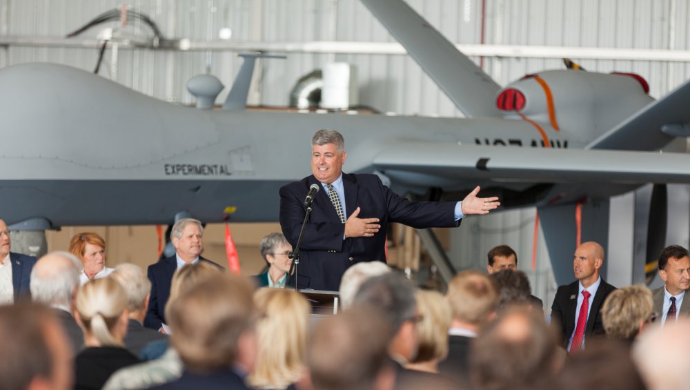 Secretary Wilson recognized the collaborative relationship between the U.S. Air Force, Grand Forks County, Grand Sky Development Company, the Northern Plains UAS Test Site and others that made federal approval of beyond visual line of sight flights at Grand Sky possible. Sens. John Hoeven and Heidi Heitkamp and North Dakota Lt. Gov. Brent Sanford also delivered remarks at the event, which included a BVLOS flight conducted by General Atomics Aeronautical Systems Inc. (GA-ASI) and a demonstration of the technology used to track BVLOS flights from the park.