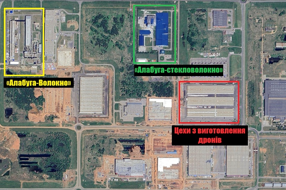 Not far from the enterprise ( here ) is also another key plant, Tatneft-Alabuga-Steklovolokno, which produces fiberglass fabrics, which are also used in the composite fuselages of the Shaheds.