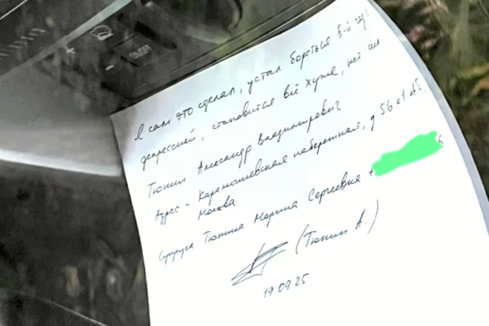 "I did it myself, I'm tired of fighting depression for 5 years, it's getting worse, I have no strength," Tyunin's note reads.