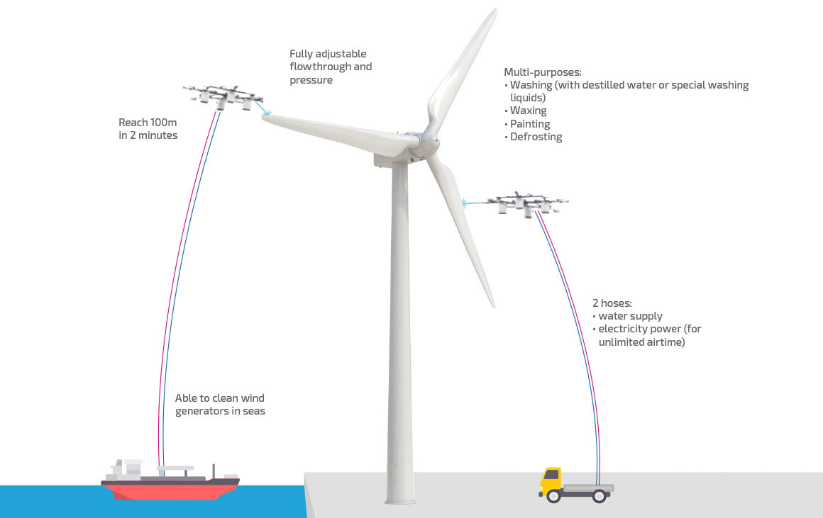 Cleaning Wind Turbine Blades by Drone