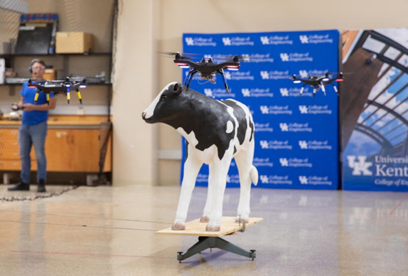 In the basement of an engineering building on UK's campus, there's a calf replica who goes by the name of Chuck. Chuck has been instrumental in perfecting the machine-learning and UAV-formation-control technology.