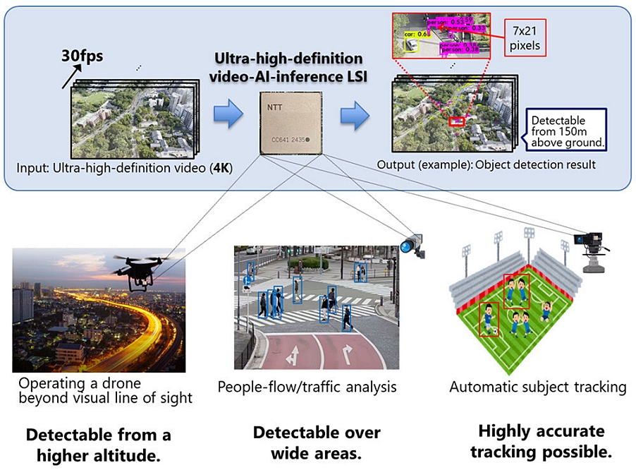 Kazu Gomi, president and CEO of NTT Research, told EE Times that the chip’s standout feature is its ability to perform real-time object detection on full-resolution 4K video streams at under 20W—a very attractive proposition for battery-powered aerial platforms.