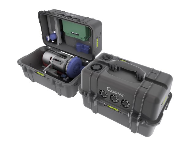 British engine maker Cubewano has adapted a heavy fuel UAS engine to create Hornet -- a lightweight portable generator weighing just 28 lbs (12.7 kg) and producing one kilowatt of power.