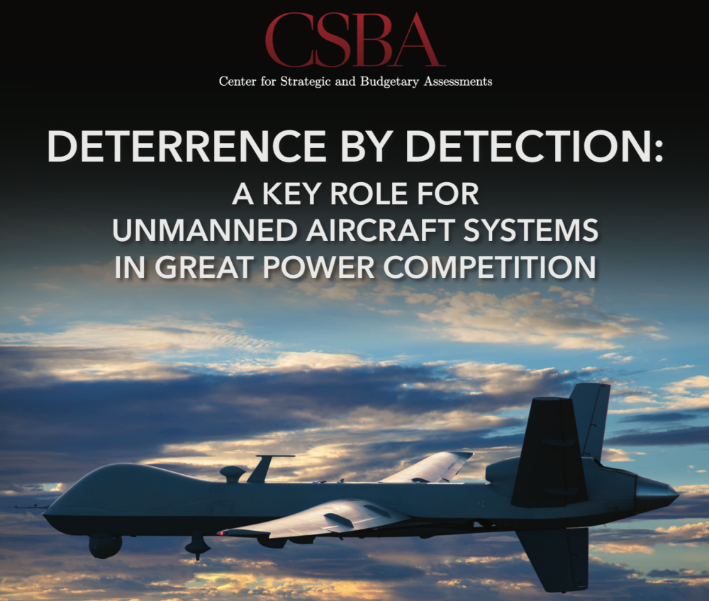 In CSBA’s latest study, Deterrence by Detection: A Key Role for Unmanned Systems in Great Power Competition, CSBA President and CEO Dr. Thomas G. Mahnken, Research Fellow Travis Sharp, and Senior Analyst Grace Kim propose a new operational concept to deter Chinese and Russian aggression, one that uses a network of existing non-stealthy long-endurance unmanned aircraft systems (UAS) to maintain real-time, persistent situational awareness in key geographic areas in the Western Pacific and Eastern Europe.