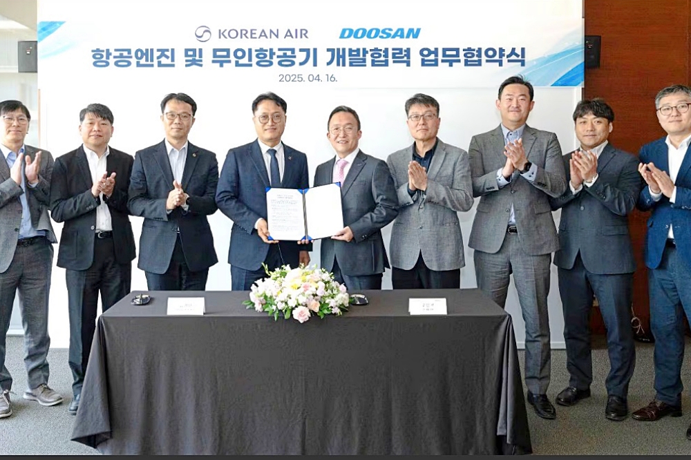 Korean Air announced on the 16th that it has signed a memorandum of understanding (MOU) with Doosan Enerbility to collaborate on developing aviation engine technology and unmanned aerial systems.