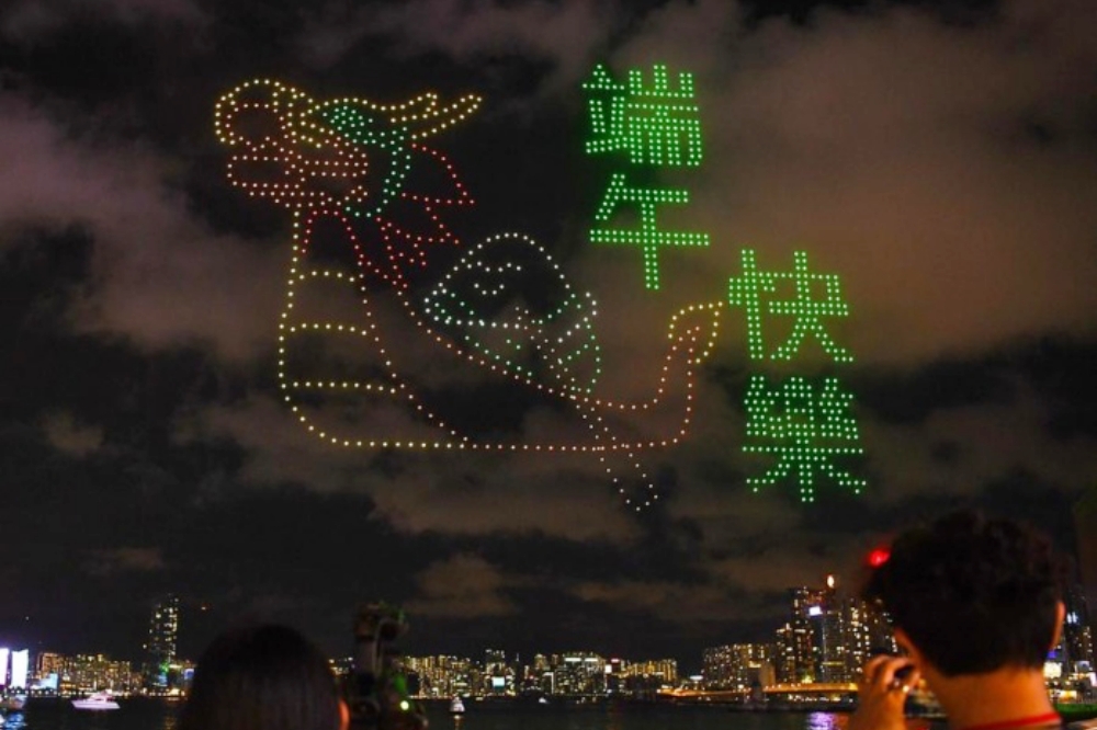 Sticky Rice dumplings, racing dragon boats, green reed leaves … stunning drone show imagery dotted the night sky over Hong Kong’s iconic Victoria Harbour on Monday, on which China’s annual Dragon Boat Festival falls this year.