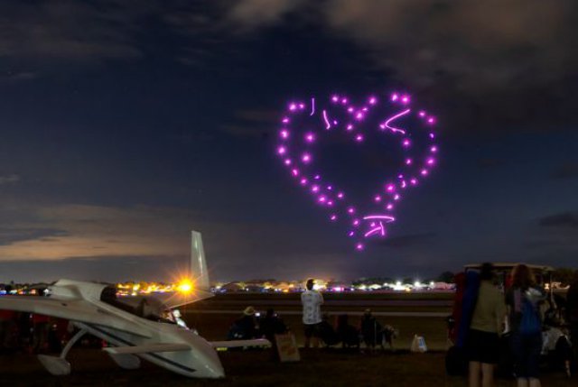 "Once this show happens, it will blow up. Obviously everyone has seen the Intel shows (at the Olympics and Super Bowl) but this show is breaking down a barrier," said EAA business manager Nick Malouf. "It's been done in airspace but never in an air show. I think you'll start to see them at smaller air shows."