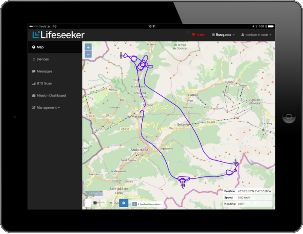 Lifeseeker is an innovative airborne system capable of locating mobile phones accurately even in areas without network coverage and under adverse weather conditions. The system takes advantage of the enormous social impact that mobile communication technologies have had in recent years in order to turn a mobile phone into an emergency beacon capable of leading rescue teams to its exact location.Lifeseeker also acts as a relay and can provide a communication channel between the missing person and the rescue team.Lifeseeker allows performing searching missions under low or no visibility conditions, including night flights, reducing sweep time of the searching area and optimizing the operational costs.