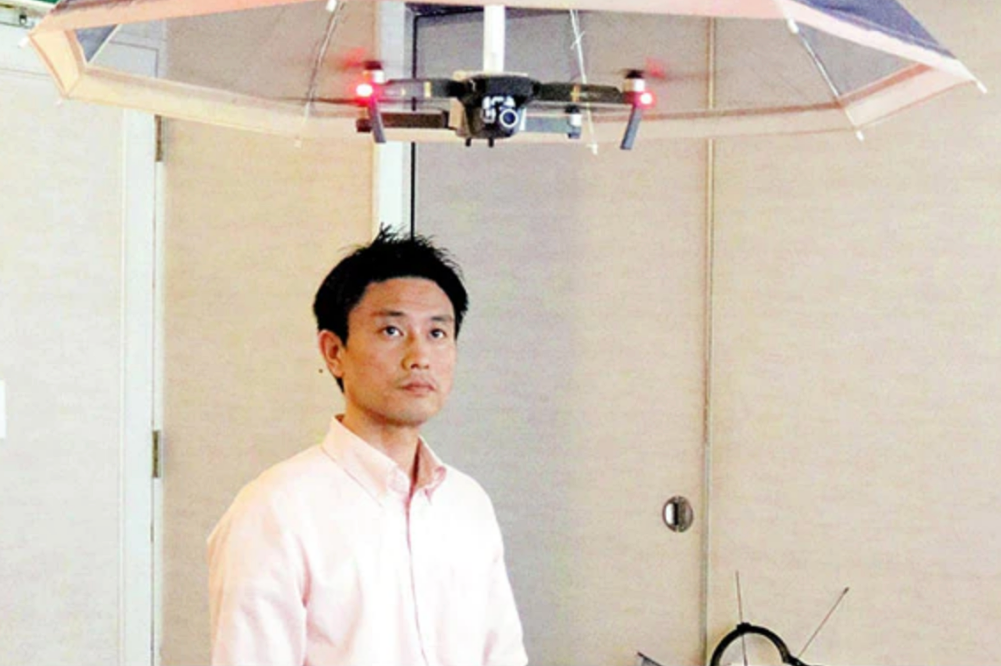 The first dronebrella/self-flying umbrella was developed by a Japanese company named Asahi Power Services in 2018. The umbrella with a drone was developed by the company's president Kenji Suzuki because he did not like to hold an umbrella. The initial cost of the dronebrella, which the company is hoping to sell, is around USD 275.