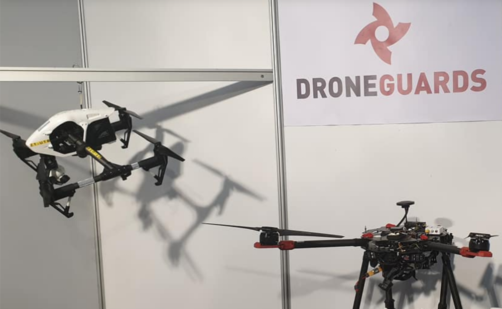 Drone Guards at present uses commercially available multi-rotor UAVs fitted with thermal cameras for day and night operations. Aerial surveillance footage is streamed live to a control room. The company is busy developing its own multi-copter UAV and mission specific software for the security industry. Their aircraft is fitted with a parachute for extra safety and has redundancy in batteries, flight controller and control systems. The company has a fixed wing vertical take-off and landing UAV in the planning stages, which is more efficient than multi-rotors for larger sites.