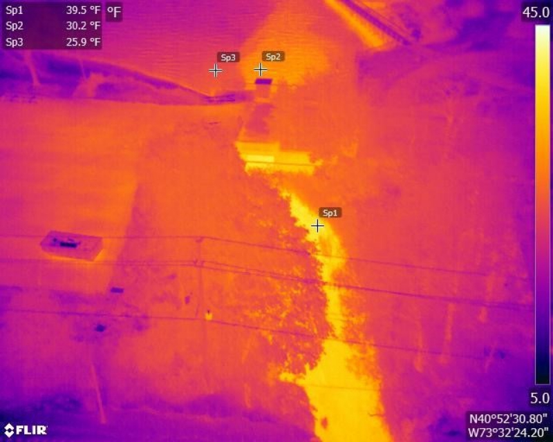 The environmental conservation group Friends of the Bay teamed up with the Oyster Bay/Cold Spring Harbor Protection Committee, Harkin Aerial and Walden Environmental Engineering to obtain a $10,000 grant from the Nassau County Soil and Water Conservation District. Their goal: identify places that are warm — and shouldn't be — and sample those areas to see whether it's a harmless anomaly or hazardous pollution. The money will come through the district's 2020 project request programs and additional funding will be provided by the protection committee.