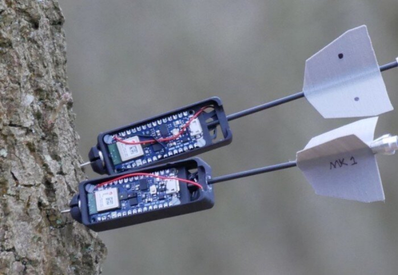 The drones are equipped with cameras to help identify suitable targets, and a smart material that changes shape when heated to launch the darts, which then stick to the trees. They can also perch on tree branches like birds to collect data themselves, acting as mobile sensors.