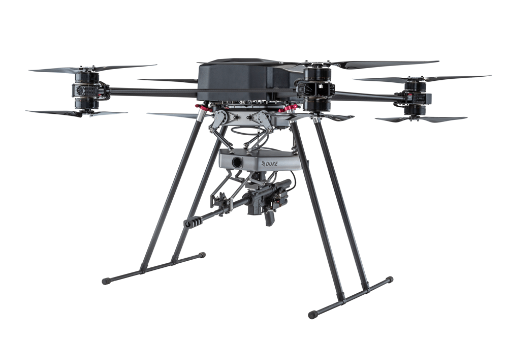 Duke Robotics introduces TIKAD, an innovative military UAS octocopter drone with a mounted lightweight firearm and advanced stabilization technology. TIKAD features a lightweight robotic gimbal with the unparalleled ability to carry and stabilize payload recoil up to three times its weight.