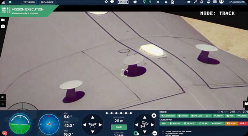 Designed and manufactured in the United States, Easy Aerial drone-based monitoring and inspection solutions are fully autonomous, all-weather capable, portable, rugged, and specifically designed for military applications. The company has developed an autonomous solution for rapid maintenance inspection of large aircraft. The system features a tethered drone attached to a self-directing base station that moves around an aircraft capturing and securely storing high-resolution images and video from multiple angles. The system dramatically reduces the time needed for current routine and emergency maintenance inspections in large hangars with scaffolding erected around the aircraft.