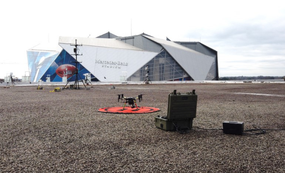 In parallel and in the same area as the CNN system, Unified Command teams appointed by the NFL also tethered a DJI M200 with an Elistair Ligh-T station to have access to continuous aerial surveillance of the event. The company, an expert in large public event security, set up their drone on a rooftop in close proximity to the stadium. The drone provided Unified Command and the NFL control posts with live images of the crowd movements in and around the stadium. Tethered to the Ligh-T, it accumulated 10 hours of flight during the Superbowl, and 14 hours in total over the 2 days.